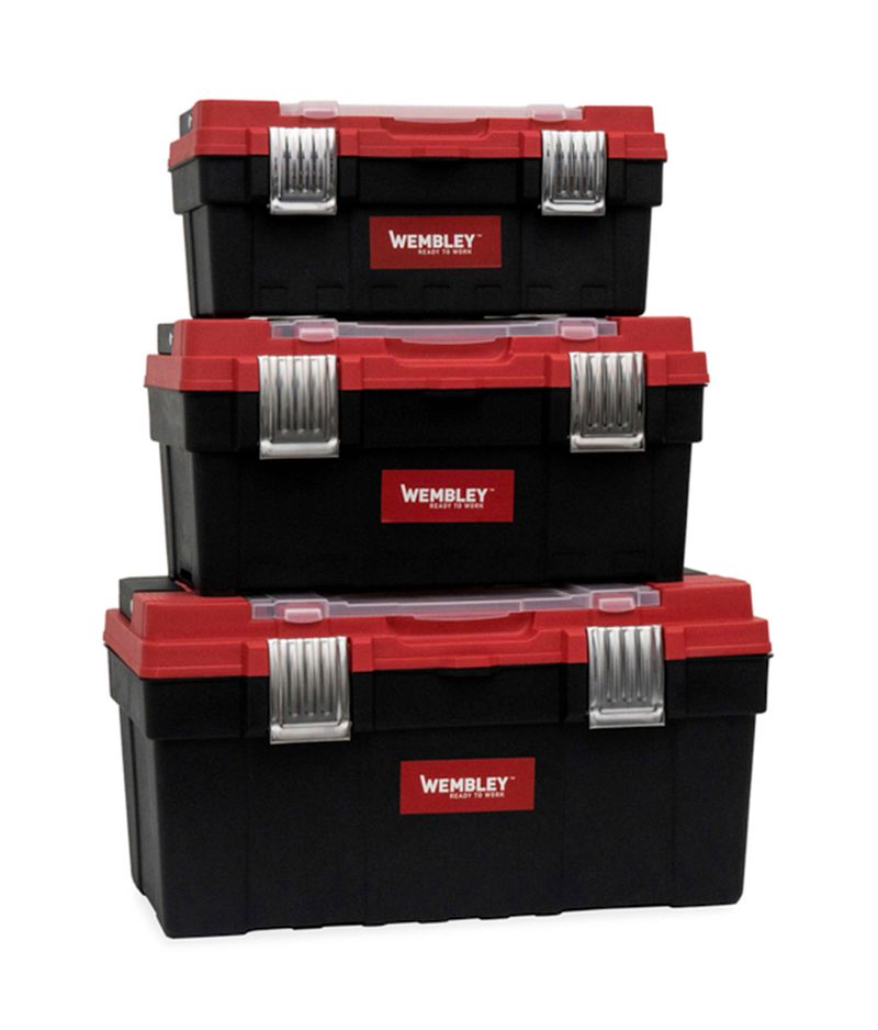 • Manija de aluminio resistente al peso, liviana y de gran vida útil. • Cierres metálicos duraderos y seguros. • Bisagras reforzadas con pasadores metálicos. • Aro de seguridad para candados. • Incluye compartimiento superior de almacenamiento para organizar piezas pequeñas. • Bandeja removible.