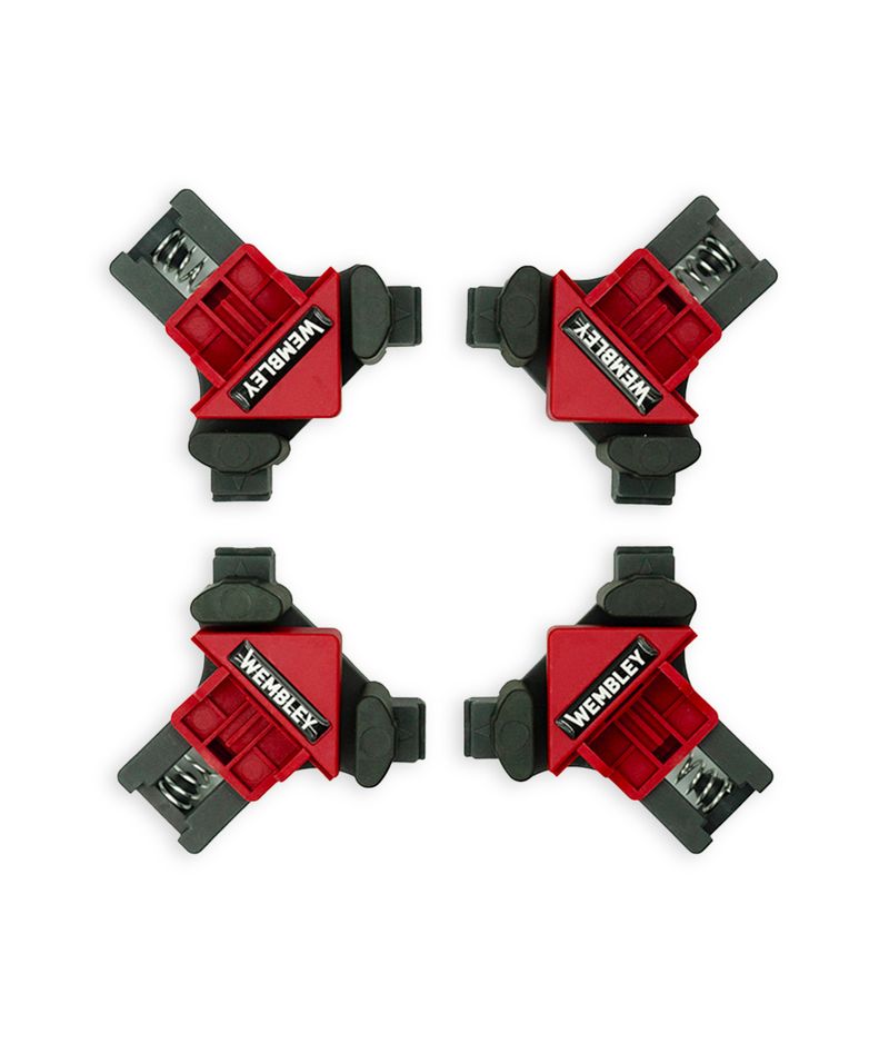 • Sujección firme y alineada de 90°. • Para esquinas y uniones en T. • Accionamiento con una sola mano, que permite realizar la ujección de manera rapida y sencilla. • Posee almohadillas intercambiables para diferentes espesores. • Posee un resorte que asegura un agarre firme. • Rango de sujección 5 a 22mm